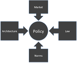 Lessig describes in his book, everyone’s behavior can be described as a “pathetic dot” and is being constrained by four modalities of regulation: law, norms, market and architecture[2]. In other terms, regulation is the complex interaction of the above mentioned forces.